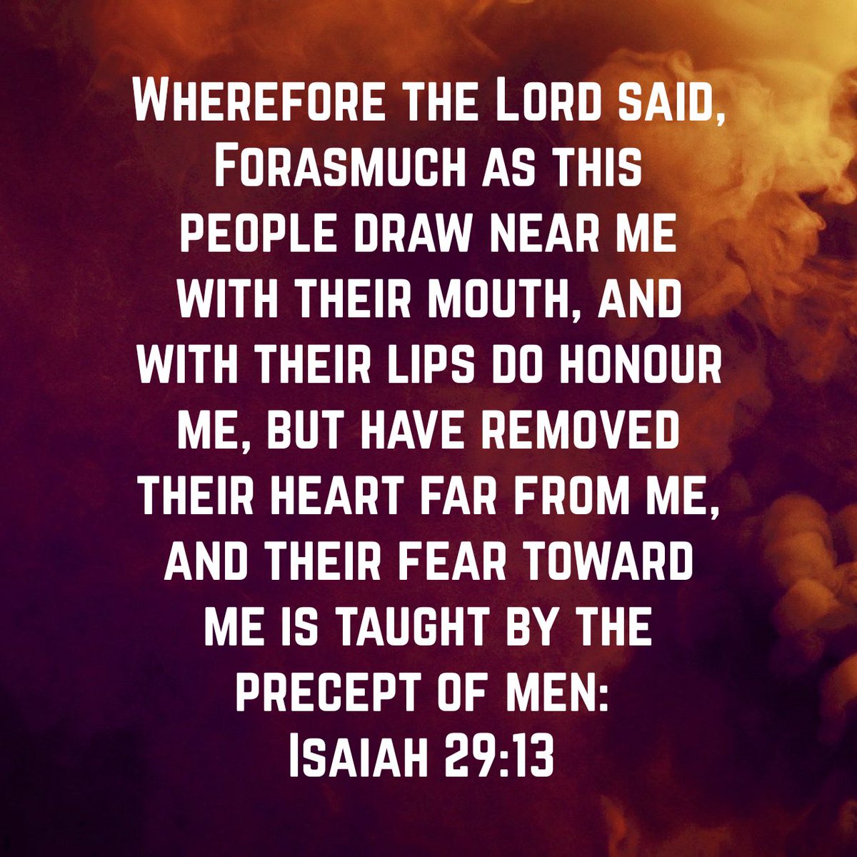 Isaiah 2913 Wherefore the Lord said Forasmuch as this people draw near me with their mouth and with their lips do honour me but have removed their heart far from me and. But their heart is far.